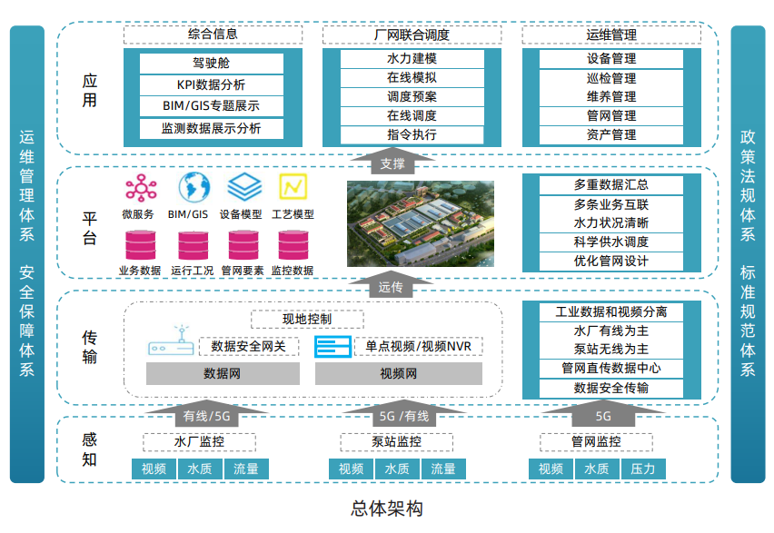 智慧水务是将自动化、信息化与智能化深度融合于水务行业所形成的新型精细化动态运行模式与管理模式。具有信息采集智能化、数据存储标准化、水务管理智慧化、决策分析科学化、水务服务定制化等特征。智慧水务建设常以保障供水安全、增强污水处理能力、强化水电运营管理、提升生态农业价值为目标,按照“水务管控一体化”原则,充分利用大数据、云计算、人工智能等新技术,建设水务监控调度中心和水务管理服务中心;基于大数据应用支撑云平台、公网通讯资源和泛在移动互联网、水质水量自动监测、工程视频动态监视、水务安全分析预警等技术,建设饮用水源地、净水厂、污水处理厂、生态农业示范园、水电站、输水供水管网、用户水质水量物联感知、在线监测、视频监视、设施监控、营业收费管理、供水综合管理、污水处理监控、水电综合管理、农业综合管理、对外服务门户网站等业务应用系统。全面服务于终端用户和各级管理部门,切实提高水务行业的社会效益、经济效益和生态效益。