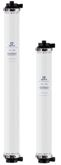 Ø 高强度大通量:坎普尔外压超滤膜丝强度为10MPa,标准产水通量 400L/㎡·h·bar, at 25℃。