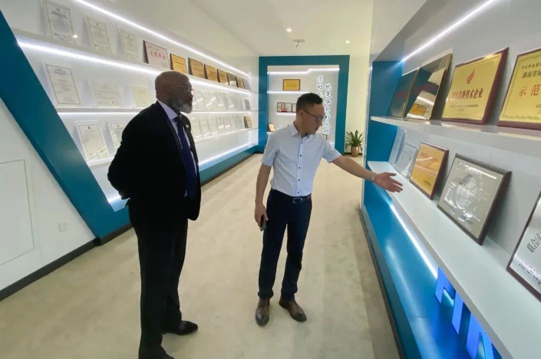 乌梅哈伊副部长对江南平台(中国)科技的热情接待表示感谢,并对公司业务发展、品牌影响、文化建设、技术创新等给予高度评价,他介绍到,利比里亚作为西非的一个重要国家,海岸线辽阔,区位优势明显,矿产资源丰富,但国家能源设施亟待发展提升,利比里亚政府许下“2030承诺,致力于大力改善国家基础设施建设,清洁能源发展空间巨大。江南平台(中国)科技业务板块与当地所需高度契合,希望公司加大在利比里亚的市场投入,输出更多成功经验,共同推动利比里亚能源产业发展,助力绿色能源技术革新,造福利比里亚当地百姓。