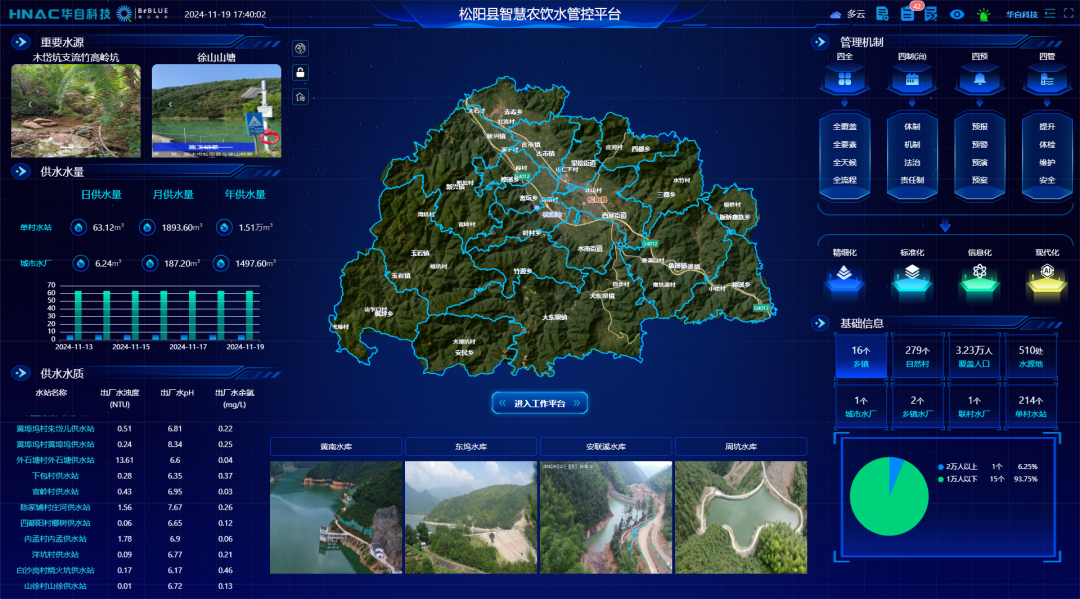 HZI-RW农村供水数字化综合管理平台应用于松阳县智慧农饮水项目,该平台不仅加速了松阳县单村水站的改造提升进程,实现对单村水站地理位置、进水流量、每日供水、水质状况及运维信息等关键数据的清晰展示,完善了供水保障体系,提升了饮水安全水平;同时,通过数字驾驶舱、供水全景图、运行管控、专业知识库等功能模块,围绕县域内农村单村水站展开综合管理、厂站孪生及矩阵管理的全面建设,构建了集实时监控、预警预测、日常巡查、维修养护、应急预案处理于一体的松阳县智慧农饮水管控平台全链条功能体系,为全面提升农村饮水安全的服务能力和运营水平提供强有力的支撑。