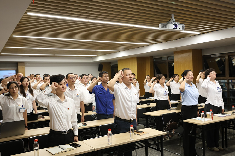 最后,全体党员肃立在党旗下,高举右拳重温入党誓词。铿锵有力的誓言响彻会场,不仅是对党员初心的再次唤醒,更是激励大家将所学所感转化为实际行动,在各自岗位上发挥先锋模范作用。