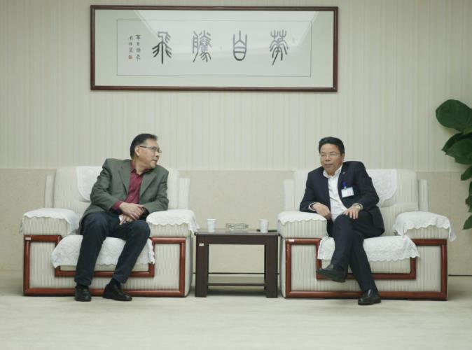 江南平台(中国)科技总裁佘朋鲋与中国能建湖南院党委委员、副总经理罗志强进行交流