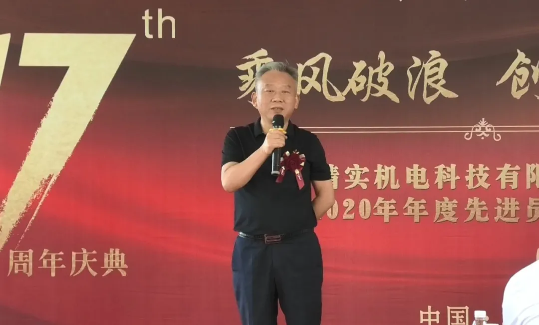总结过往、激励先进、展望未来。会上,董事长李洪波回顾了创业历程并向辛劳付出的全体精实人致以诚挚的感谢。他表示,17年来,精实人抢抓机遇、攻坚克难、砥砺前行,树立了良好的品牌形象,在新能源行业大放异彩。这些成绩是精实机电全员辛勤浇灌培育的花朵,也是全员众志成城开拓进取的累累硕果,希望全体员工继续发扬吃苦耐劳精神,为实现“成为国内锂电池自动化和智能制造的领先企业,让世界更高效!”的企业价值观而努力奋斗。
