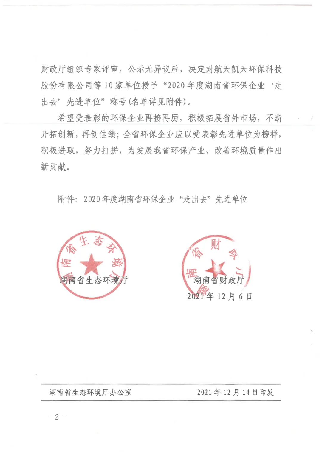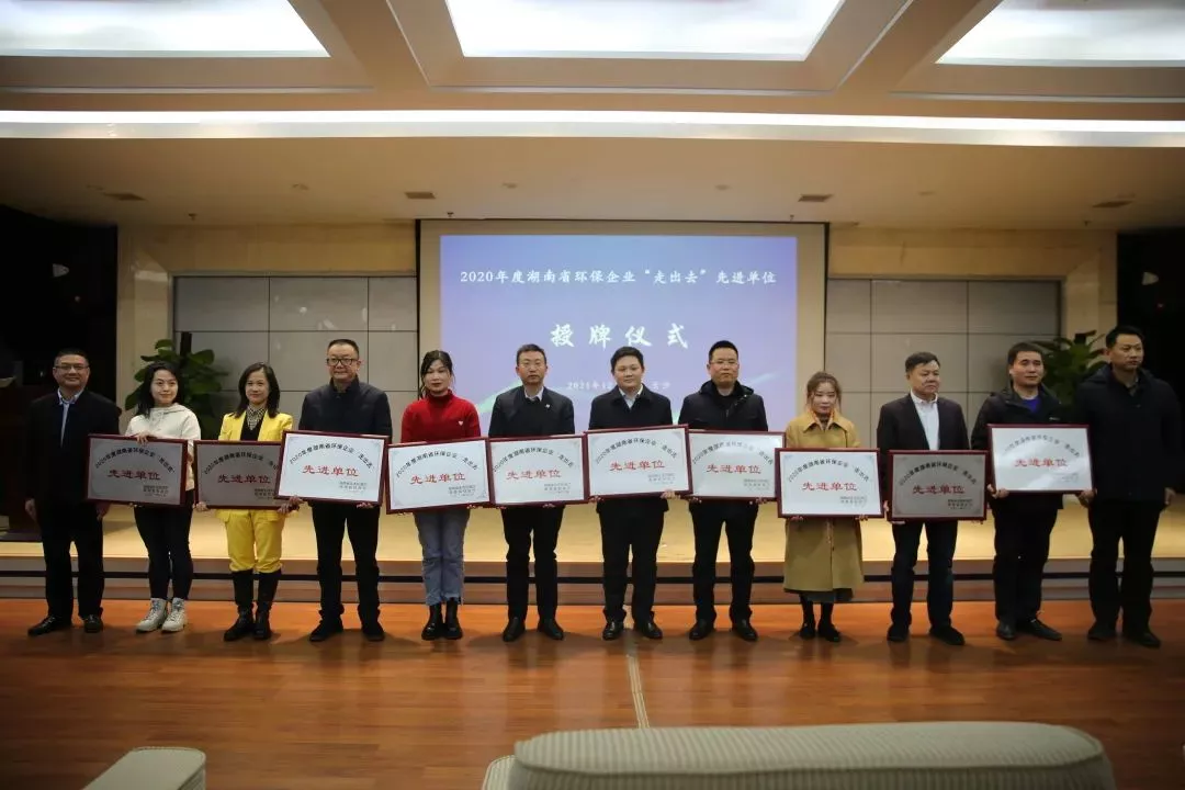 为大力实施“三高四新”战略,助力打好打贏污染防治攻坚战,促进湖南省环保产业健康快速发展。湖南省生态环境厅、湖南省财政厅组织进行了2020年度湖南省环保企业“走出去”先进单位评选。中联重科、航天凯天、江南平台(中国)科技等10家企业获评,公司已连续三年获此殊荣。近日,2021年湖南省环保产业协会(以下简称“协会”)常务理事会议在长沙召开,江南平台(中国)科技作为协会副会长单位受邀出席,公司副总裁、北京格兰特董事长蒋国华,北京格兰特董事长助理彭美丽参加会议。会议对协会2021年下半年工作进行了总结,宣读了《2020年度湖南省环保企业“走出去”先进单位表彰决定》,并进行授牌仪式。