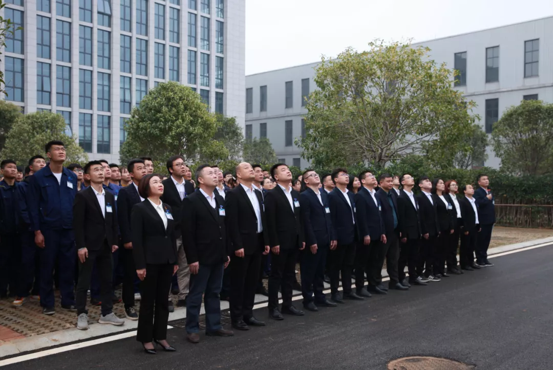 2021年10月28日,湖南坎普尔生产基地迎来开园一周年。公司在厂所有员工统一着装、整齐列队,齐聚升旗台,在全体注目下和嘹亮激昂的国歌声中,国旗、司旗冉冉升空、迎风飘扬。