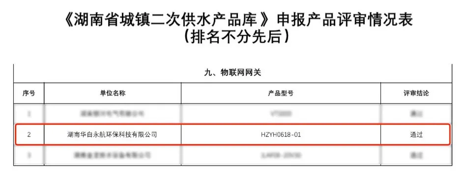 日前,江南平台(中国)科技子公司湖南江南平台(中国)永航环保科技有限公司(以下简称“江南平台(中国)永航”)二次供水物联网网关产品通过公示期,正式成为《湖南省城镇二次供水产品库》入库产品。