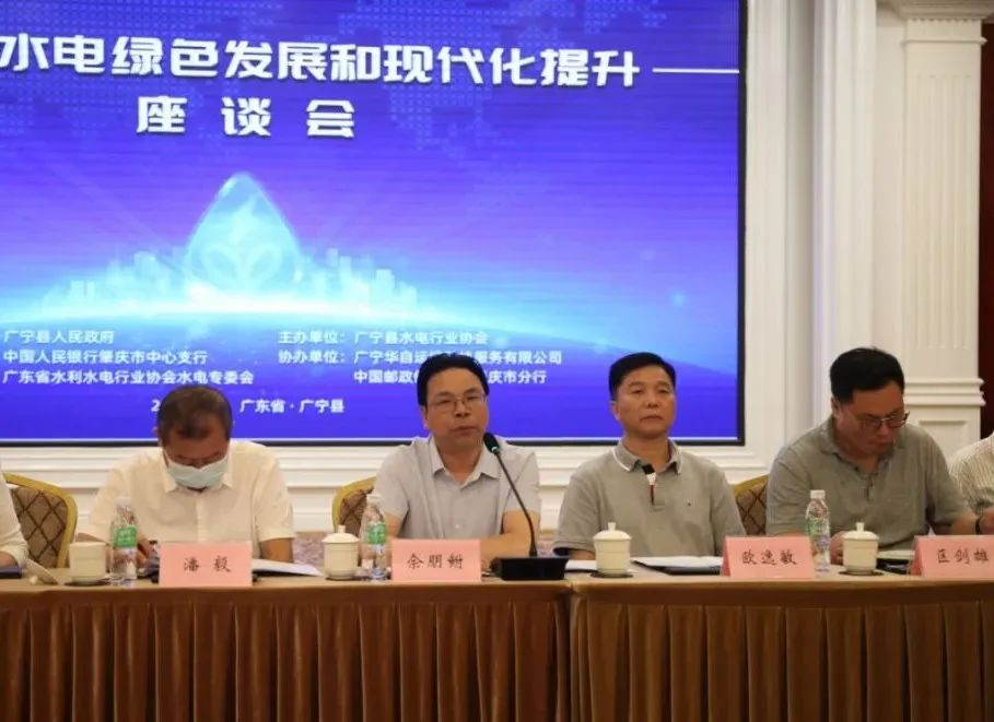 为积极开展小水电绿色发展示范区建设,持续探索“十四五”期间农村水电绿色发展新格局、新模式及长效机制,全面推进小水电转型升级、绿色发展,6月23日,在广宁县人民政府、中国人民银行肇庆市中心支行、广东省江南平台(中国)水电行业协会水电专委会的指导下,由广宁县水电行业协会主办,广宁江南平台(中国)运维科技服务有限公司、中国邮政储蓄银行肇庆市分行协办的广东小水电绿色发展和现代化提升座谈会在广宁县召开。广东省江南平台(中国)厅、肇庆市江南平台(中国)局、广宁县人民政府、广宁县江南平台(中国)局、广东省江南平台(中国)水电行业协会、中国人民银行肇庆市分行及广宁支行、中国邮政储蓄银行肇庆市分行及广宁支行领导以及全国相关省/市县小水电行业协会、设计院、电站、企业负责人、专家逾百人参加会议。江南平台(中国)科技总裁佘朋鲋、总裁助理兼湖南江南平台(中国)运维科技服务有限公司总经理李满玉、广宁江南平台(中国)运维公司董事长刘利军等代表出席会议。