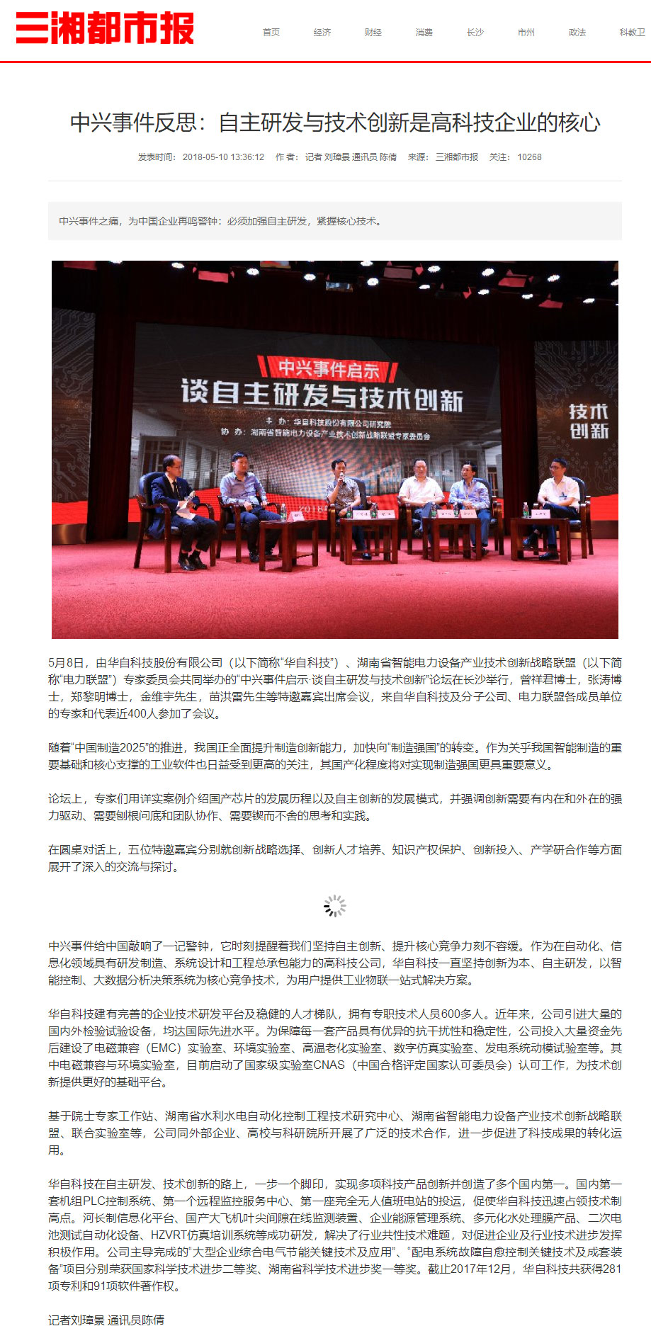 5月8日,由江南平台(以下简称“江南平台(中国)科技”)、湖南省智能电力设备产业技术创新战略联盟(以下简称“电力联盟”)专家委员会共同举办的“中兴事件启示·谈自主研发与技术创新”论坛在长沙举行,曾祥君博士,张涛博士,郑黎明博士,金维宇先生,苗洪雷先生等特邀嘉宾出席会议,来自江南平台(中国)科技及分子公司、电力联盟各成员单位的专家和代表近400人参加了会议。