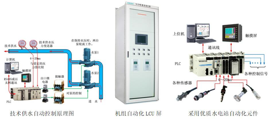 1)完成水轮发电机机组的自动开机、同期、停机、发电机有功功率调节、无功功率调节、发电机工况的转换等;