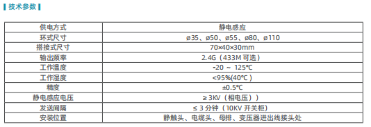 GCT-100 中高压无源无线测温装置采用静电感应方式取电,目前根据电力技术的发展,高压开关柜正向自诊,智能化方向发展,定期检修向状态检修发展,而在线测温是智能开关柜重要分析技术指标。
